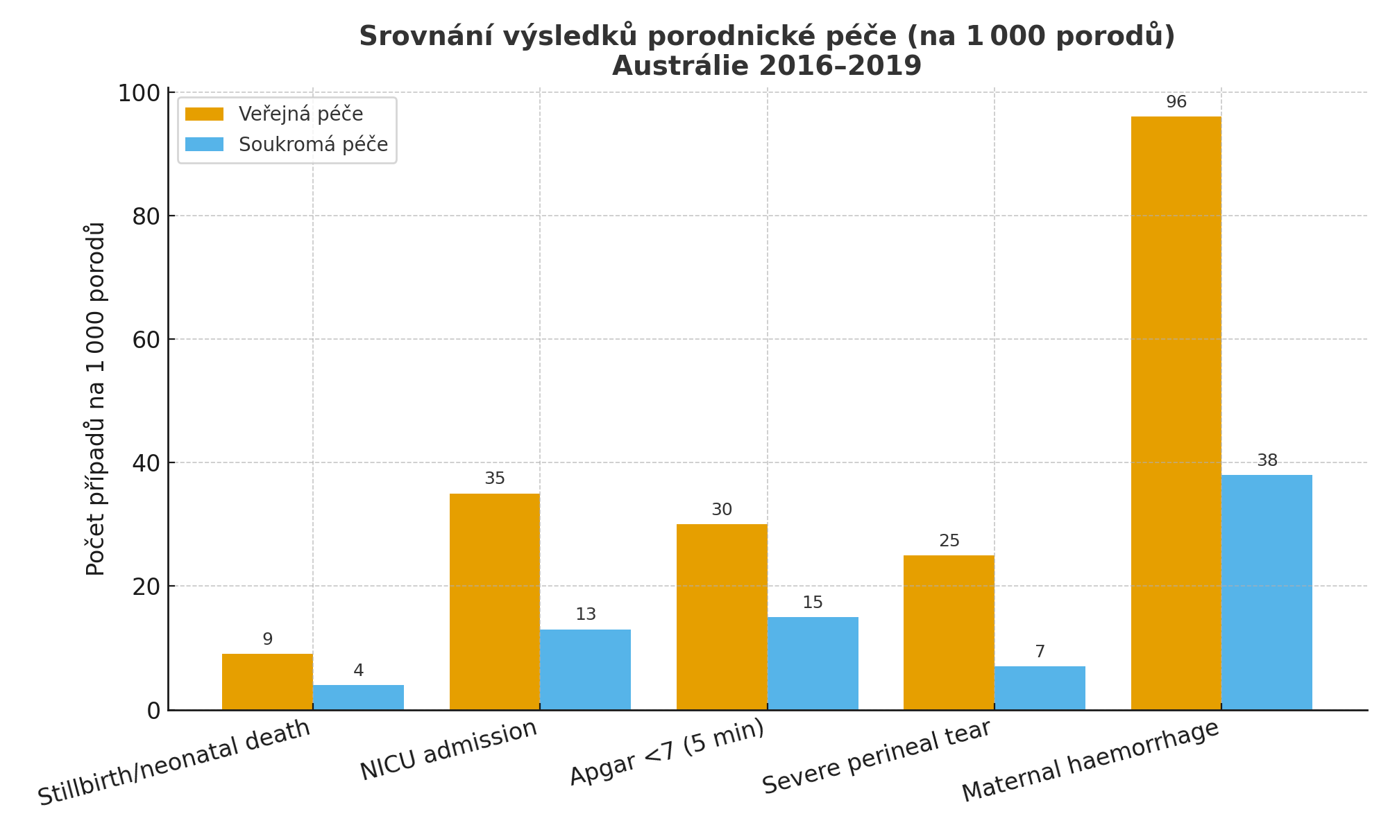 zdroj: E. J. Callander, J. Enticott, B. W. Mol, et al., “ Maternal and Neonatal Outcomes and Health System Costs in Standard Public Maternity Care Compared to Private Obstetric-Led Care: A Population-Level Matched Cohort Study,” BJOG: An International Journal of Obstetrics & Gynaecology (2025): 1–11, https://doi.org/10.1111/1471-0528.18286.