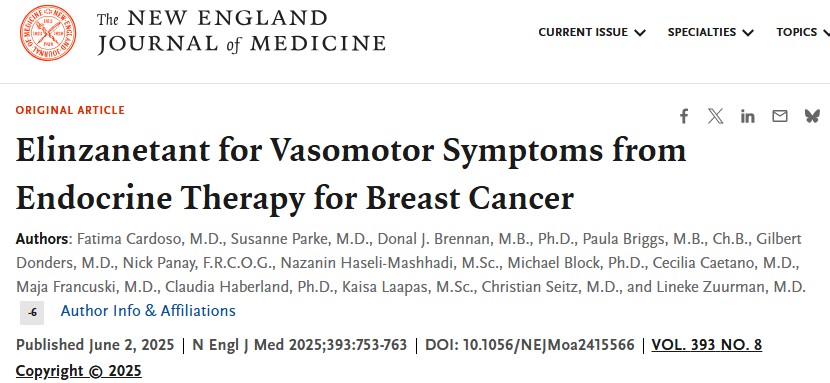 Elinzanetant for Vasomotor Symptoms from Endocrine Therapy for Breast Cancer | New England Journal of Medicine